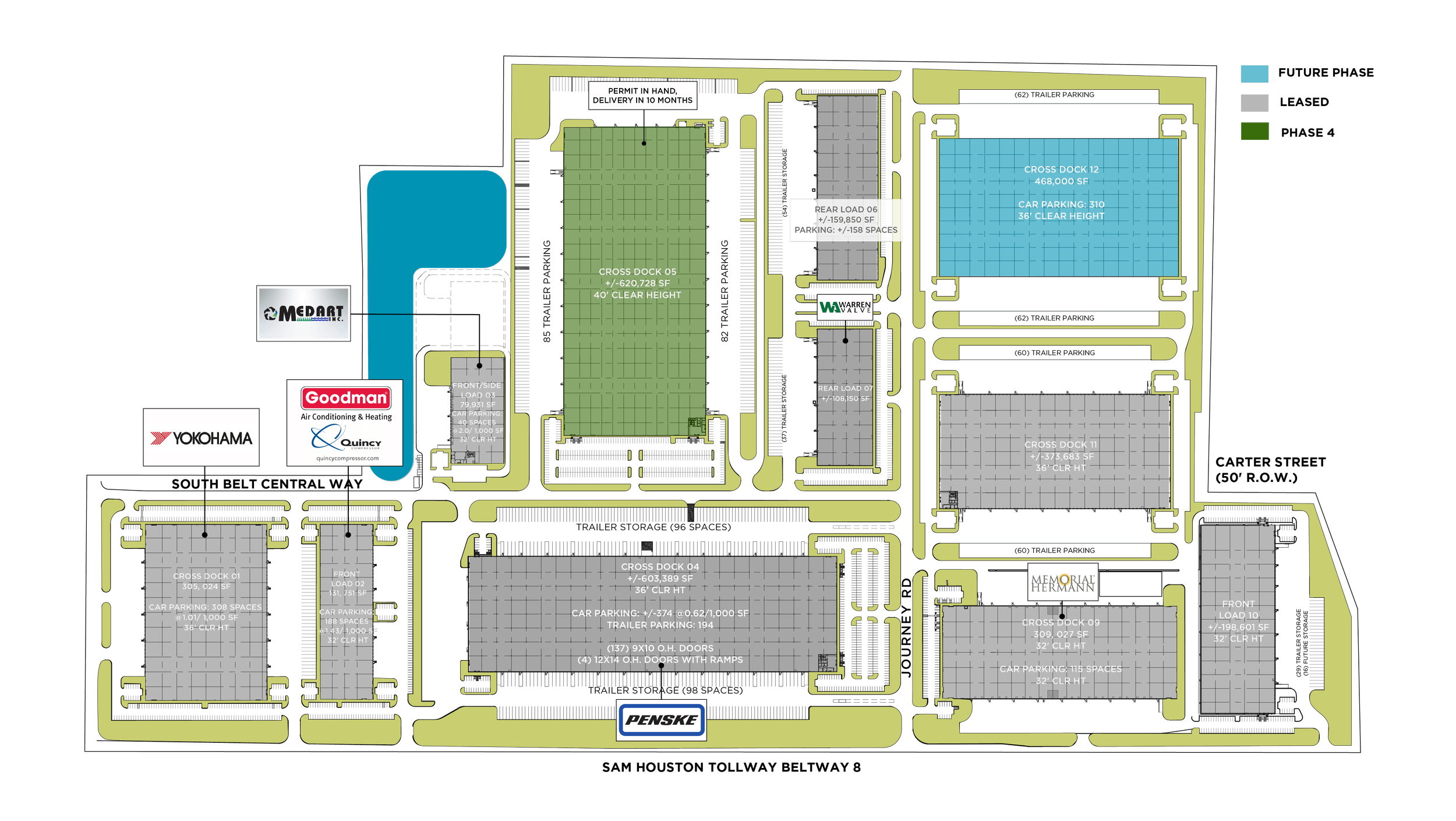 117 dock doors with 4 ramped drive-ins